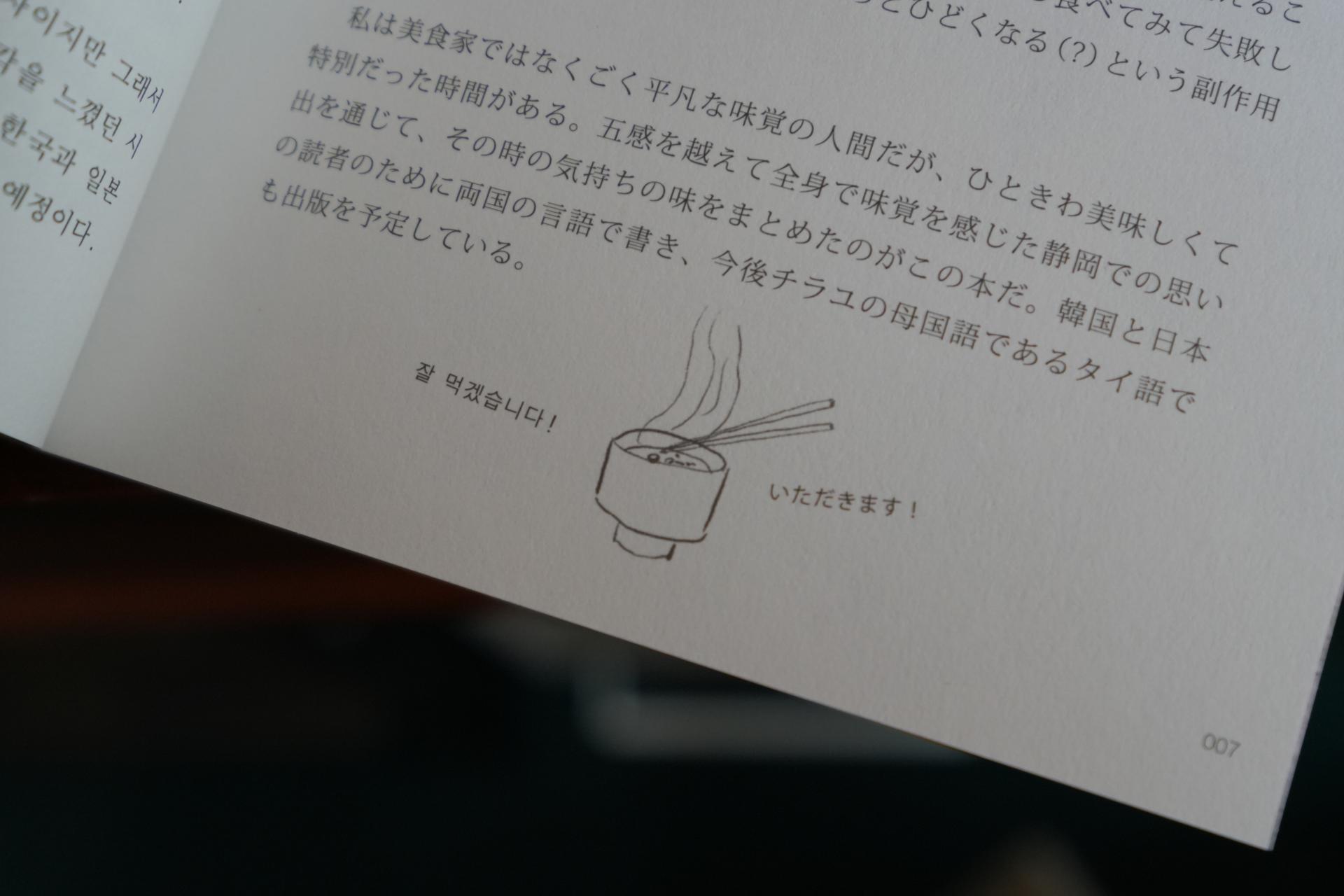 "시즈오카에서 경험한 여러가지 ‘기분’ 에 ‘맛’ 을 담고 ‘시간’ 을 함께 넣어 푹 익혀 엮었습니다 ."
